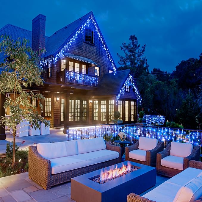 - 【Ideal Outdoor Decorations】 - The icicle lights outdoor are IP44 Waterproof, which can withstand all kinds of weather, ideal for indoor and outdoor decorations. LED Christmas lights are perfect for Christmas, Halloween, Thanksgiving, wedding, party, Valentine's Day and any celebrating time. However, please keep the plug away from water.