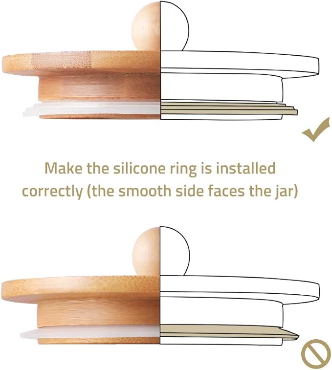 - About Silicone Ring - Make sure that the silicone ring is installed correctly (look at the second picture carefully). The natural bamboo cover has a spherical knob, which is convenient for you to pick up the cover.