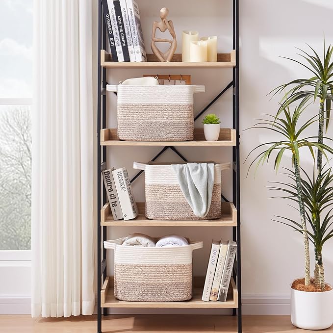 - High Quality Cotton Rope Woven: Woven cotton thread is very soft and don't damage your floors and furniture. Seamless design, not easy to tear,More firm than rattan and plastic materials. Our storage basket has no harsh chemiacls added, and the cotton rope basket is safe for kids, elders and pets. Firm enough and stylish enough to go anywhere in the home