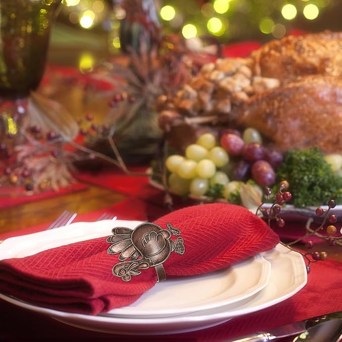 - Material: These turkey napkin ring are made of quality metal, which is durable and not easy to break or deform. The pattern desigh is vintage and the surface is also well polished, add the atmosphere of thanksgiving day for your table. After each time use, please clean the napkin ring and keep it in a dry place for next time use