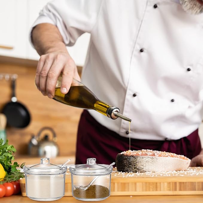 Patelai 4 Pieces Sugar Bowl Acrylic Clear Sugar Bowl with Lid and Salt Spoon Storage Jar with Airtight Lid for Salt, Tea, Spices, Herbs, Condiments(13 oz)