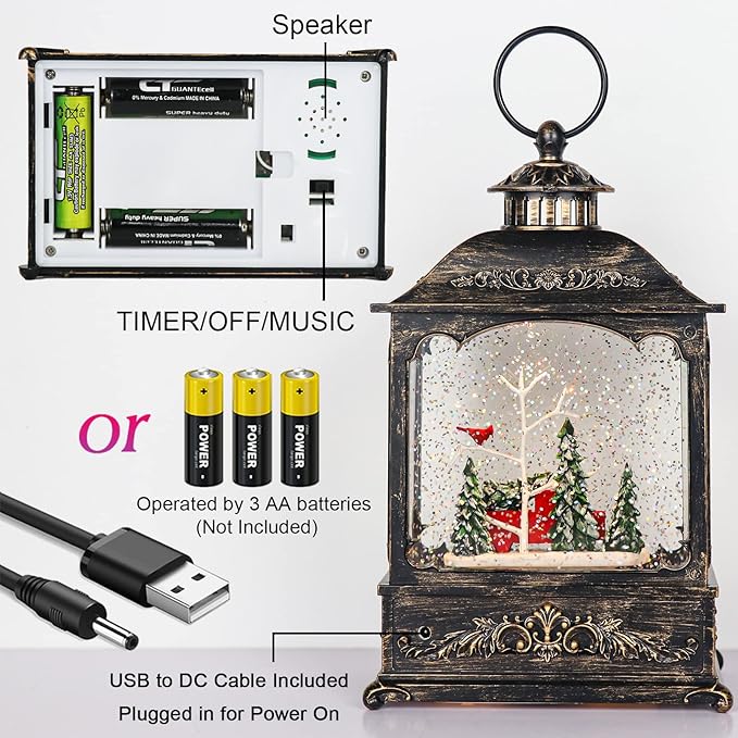 - PACKAGE LIST: You will get 1 pcs car Snow Globe Lantern with Timer, 3 AA batteries( not included). Product dimension is 9.6" x 4.6" x 3.1"