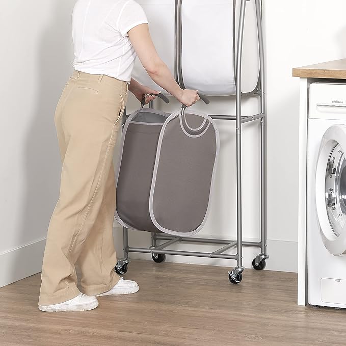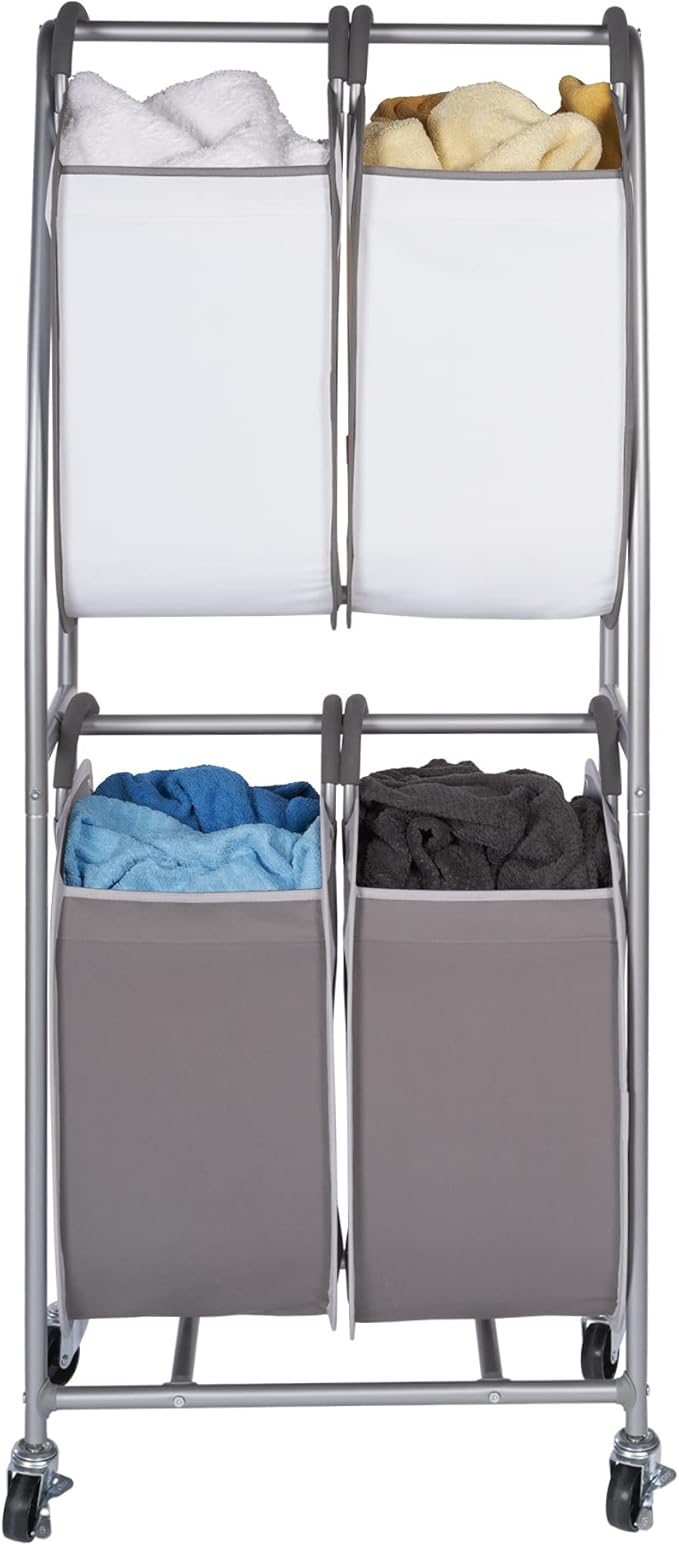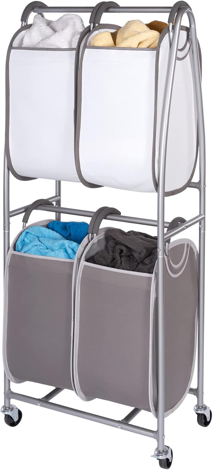 - SMART STORAGE SOLUTION - Designed to maximize the vertical space in your home, this rolling 2 tier laundry sorter from Neatfreak! hangs four large front-loading tote hampers to help you enhance the available storage space in your laundry room, hallway, bedroom or bathroom.
