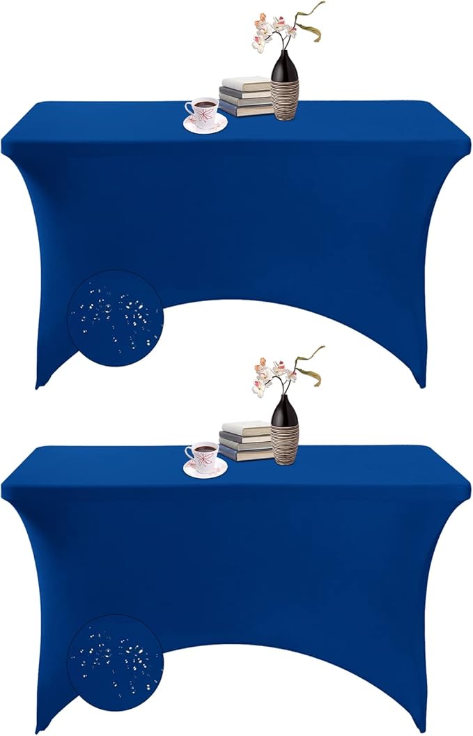 2Pack Spandex Waterproof Table Covers 4ft,Spandex 4ft Waterproof Table Cover for Party,Wedding, Banquet, and Events(Classicbule)