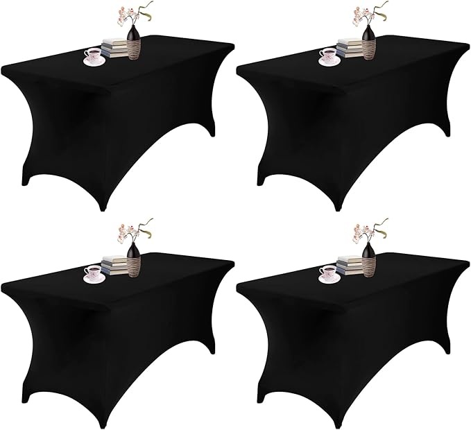 4-Pack Rectangular Spandex Waterproof Tablecloth, 6FT, Black - Stretchable, Stain Resistant, All-Season, Durable, Party, Wedding, Banquet, Events, Table Cover