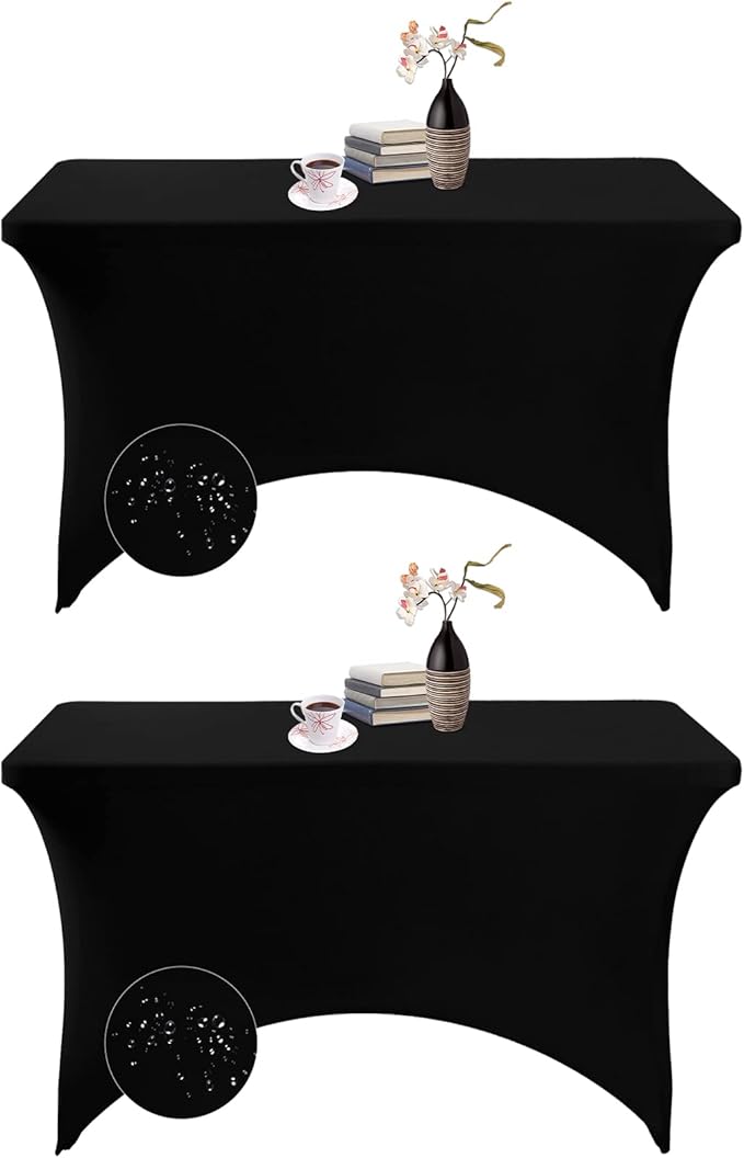 2Pack Spandex Waterproof Table Covers 4ft,Spandex 4ft Waterproof Table Cover for Party,Wedding, Banquet, and Events(Black)