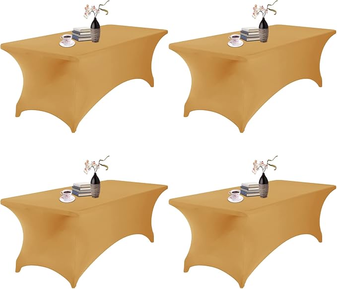 4Pack Spandex Waterproof Table Covers 8ft,Spandex 8ft Waterproof Table Cover for Party,Wedding, Banquet, and Events(Gold)