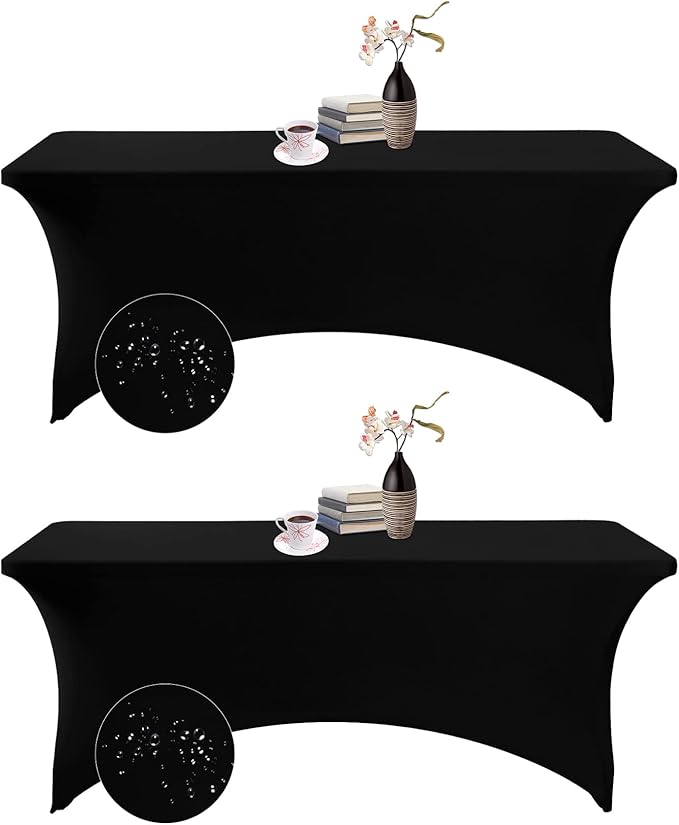 2Pack Spandex Waterproof Rectangular Table Covers, 6FT, Black, Stretchable, Stain Resistant, All-Season, Tablecloth for Party, Wedding, Banquet, Events