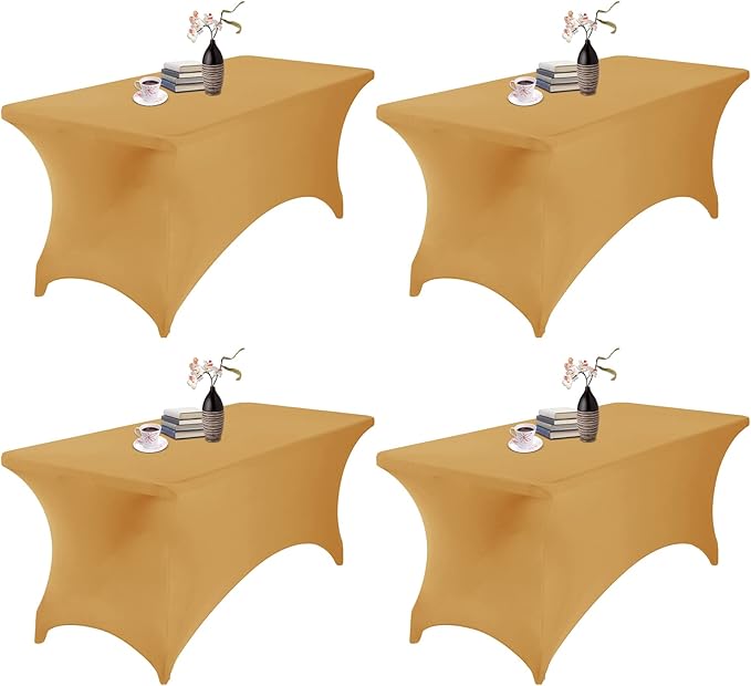 4Pack Spandex Waterproof Table Covers 6ft,Spandex 6ft Waterproof Table Cover for Party,Wedding, Banquet, and Events(Gold)