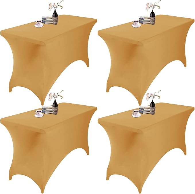 4Pack Spandex Waterproof Table Covers 4ft,Spandex 4ft Waterproof Table Cover for Party,Wedding, Banquet, and Events(Gold)
