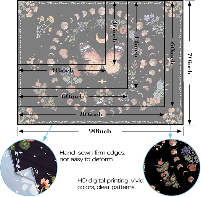 - 【Practicality】: This moon phase tapastry's can be used as wall decor, aesthetic poster, bed cover, beach blanket, picnic blanket, table cloth, etc.
