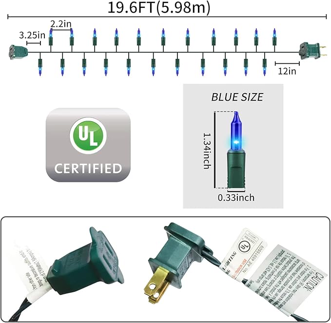 Green Wire,Blue Incandescent Bulb 100 Mini String Lights for Indoor Christmas Tree Garland Birthday Wedding Party Festival Decoration
