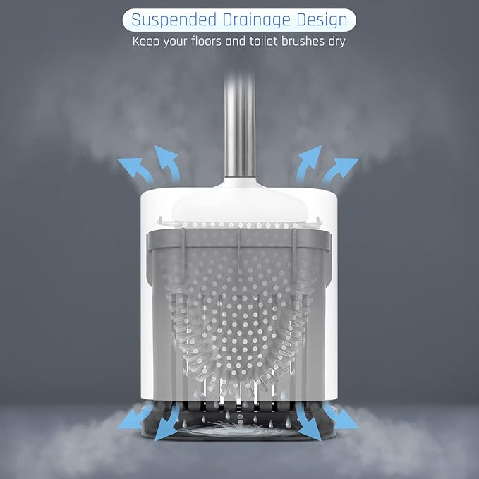 - Easily Clean Dead Corner: The flat silicone toilet brush head can be bent to fit the angle of the rim, reaching under the rim. The tip of the brush head is designed to clean the edge of the toilet bowl better by bending the brush head upward
