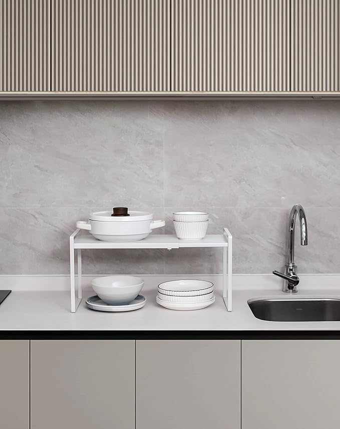Nxconsu Expandable Cabinet Shelf Organizer Riser for Kitchen Pantry Cupboard Under Sink Countertop Home Storage Organization Rack Space Saver Freestanding Heavy Duty Nonslip Stackable White Large