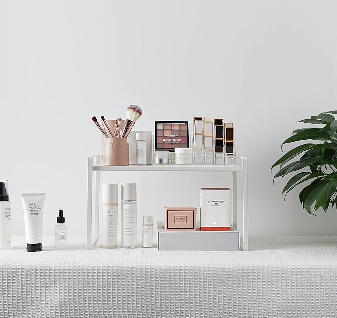 - CHARACTER DESIGN: This cabinet shelf can create plenty of space for your household items such as cups, pots, bottles, bowls, cookware, or canned foods without dominating space in your cabinet. This stylish cabinet shelf fits neatly on the countertop to keep your essentials organized and easily accessible.