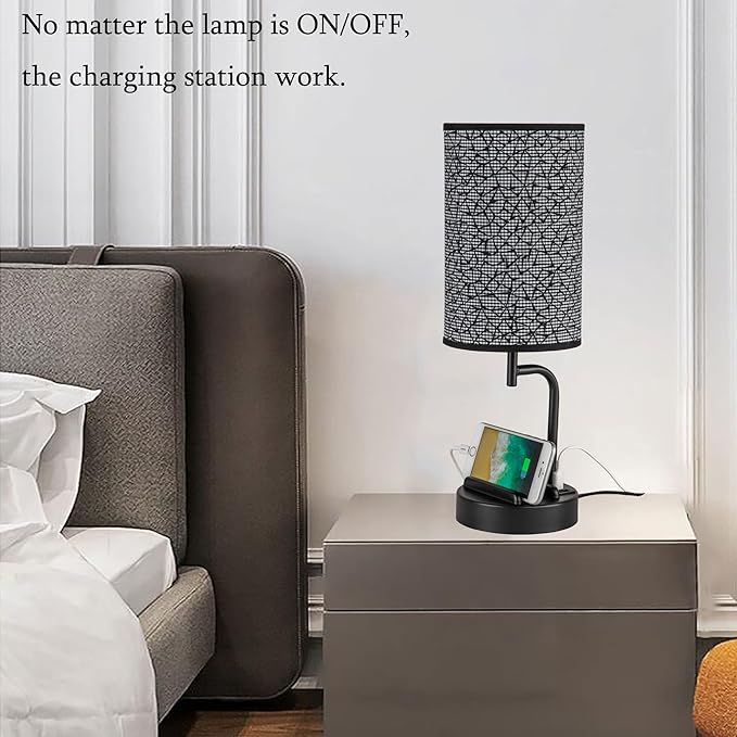 - 【Minimalist Stylish Design with Phone Stands】With minimalist and novel design, this modern multifunctional table lamp is great for wide application. Two phone slots on the base are helpful to hold your devices and keep your desk neat while charging. It can work as a bedside table lamp for bedroom/guestroom, study desk lamp for home/office, night ambient lamp for baby nursery room etc., which gives off comfortable lighting. It is also a great gift for your family or friends.