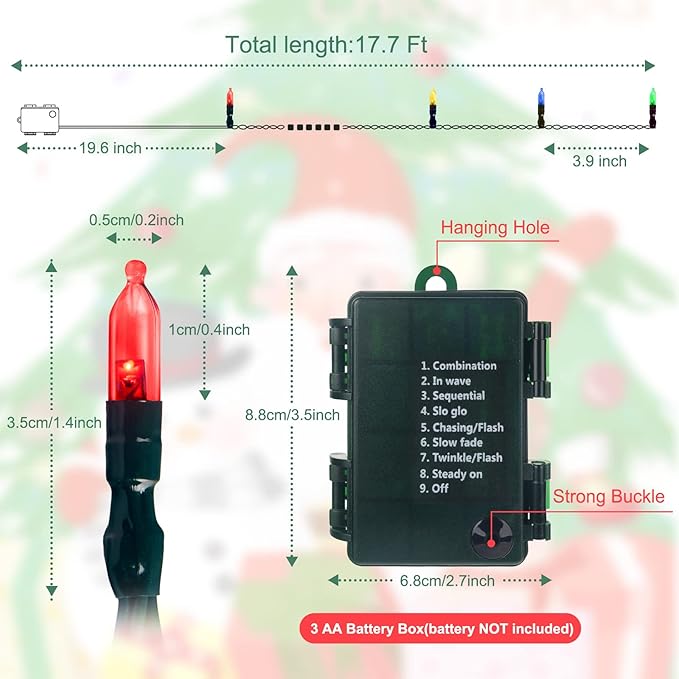 - Special Feature : 2Pack 50 LED Battery Operated Christmas Lights 17.7 FT, Multicolor Waterproof Mini String Lights with 8 Lighting Modes,Timer, Remote Control, for Tree, Christmas Decoration, Outdoor, Indoor 2Pack 50 LED Battery Operated Christmas Lights 17.7 FT, Multicolor Waterproof Mini String Lights with 8 Lighting Modes,Timer, Remote Control, for Tree, Christmas Decorati… See more