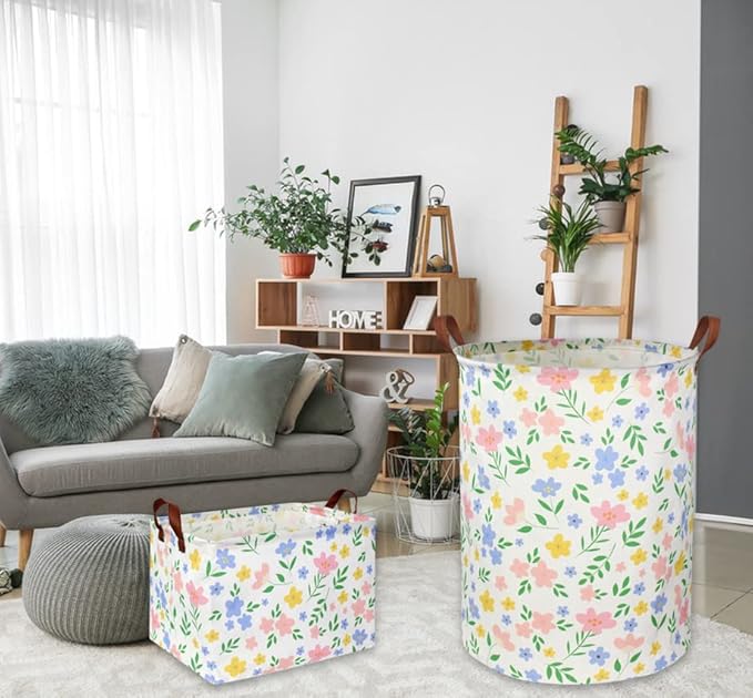 HIYAGON Kids Storage Basket Baby Girl Basket Gift Baskets Empty Cute Toy Storage Bin Organizer Box Rectangular Bedroom Decor Books(Flower)