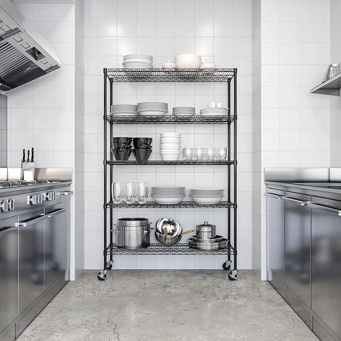 Seville Classics UltraDurable Heavy Duty NSF Solid Steel Wire Rack Storage Unit, Organizer for Garage, Warehouse, Office, Restaurant, Classroom, Kitchen, Black, 5-Tier Shelving, 48" W x 18" D