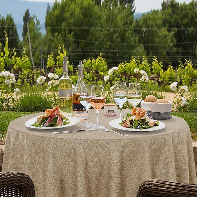 Fitable Faux Linen Round Tablecloths 60 Inch in Diameter - 2 Pack Faux Burlap Table Clothes for Kitchen, Dining Room, Party, Farmhouse, Outdoor (Great for 20"-48" Round Tables, Khaki)
