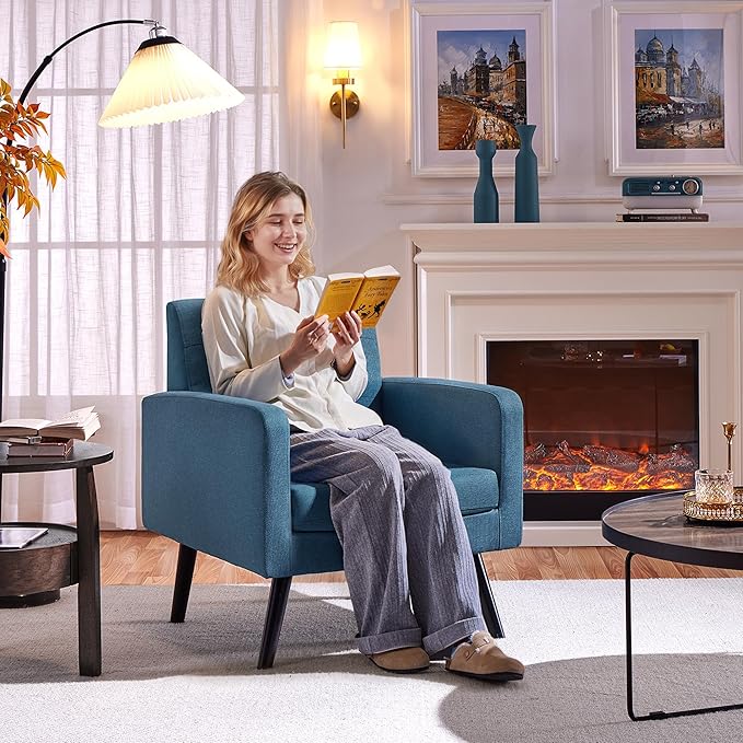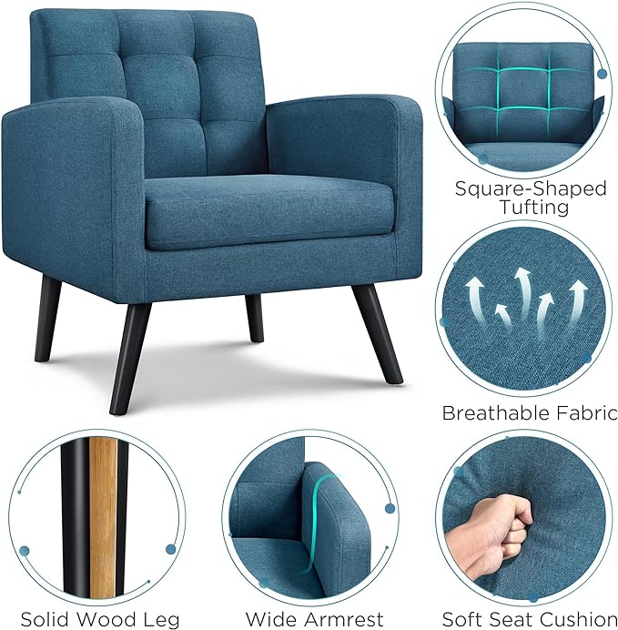 - Modern design: With the stylish and modern design, the fabric armchairs give your room a retro feel with the modern shape and adds a touch of elegance to your room. Strong lines and a modern style, both create a favorite lounging spot.