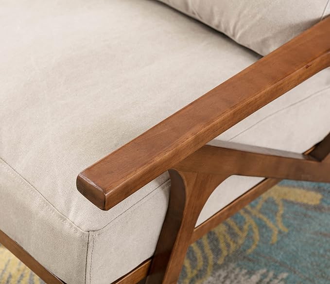 - 🍷【Mid Century Style】With Dark walnut solid wood frame and beige canvas surface, vintage understated color palette, this mid century accent chair compliments for any outfit in your home and you'll get many compliments from families and friends