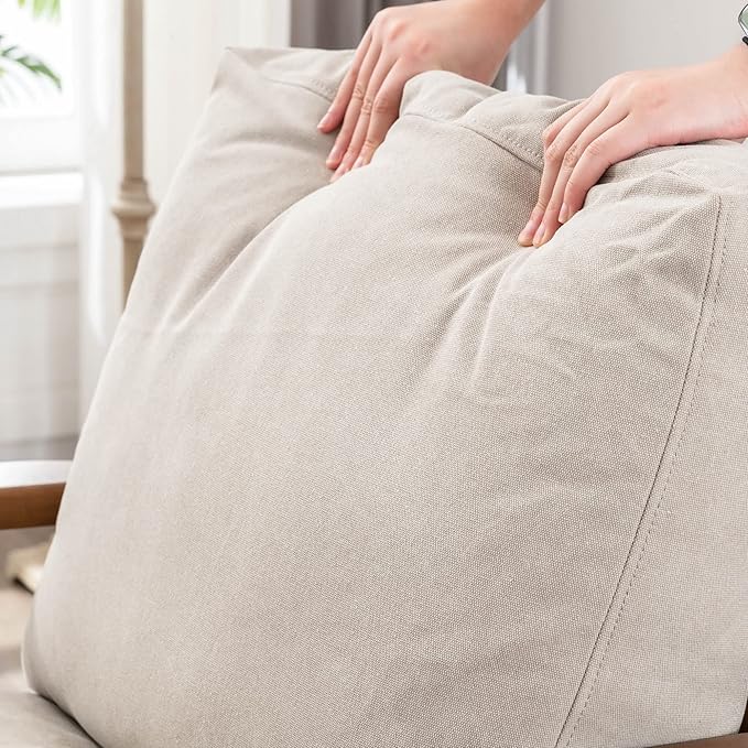 Wahson Set of 2 Mid Century Chair, Upholstered Accent Armchairs, with Wood Frame and Canvas Cushions, Leisure Slipper Chair for Living Room/Bedroom, Beige
