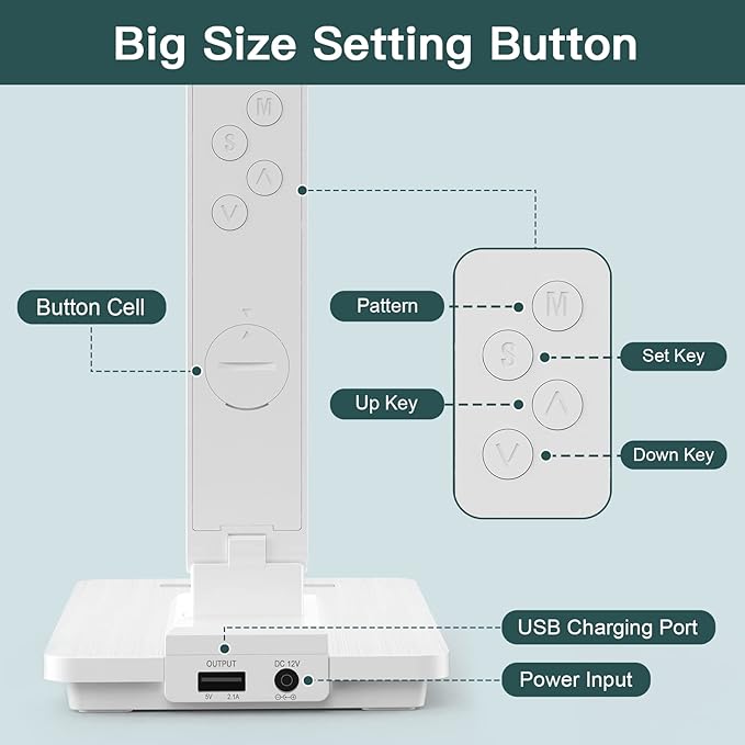 - 【USER FRIENDLY UPGRADE】 We have improved the small size setting button on the back of the smart desk lamp to a large size setting button for easy fingertip operation.