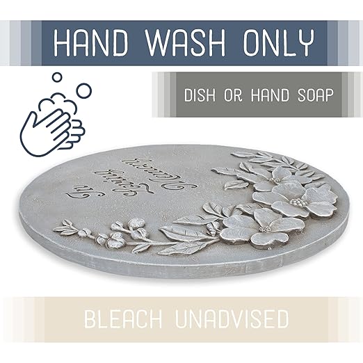 - INDOOR OR OUTDOOR USE - Stepping stone measures approximately 12 inches in diameter; For longest lasting color and finish, consider covering in extreme cold temperatures. Resin prevents water damage and splitting.