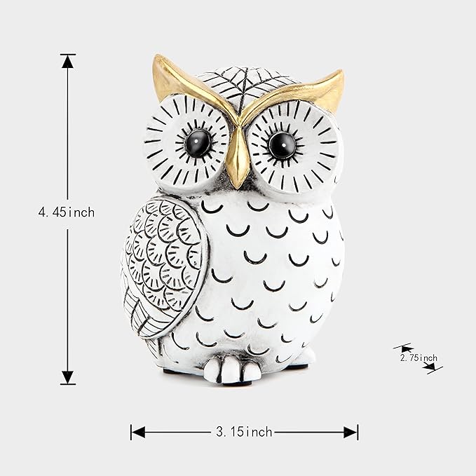 - Measurement: The Owl sculpture measures 4.4”x2.7”x3.1”inch, item weight is 0.35LB. It is painted with antique appearance and mix with odd black/white