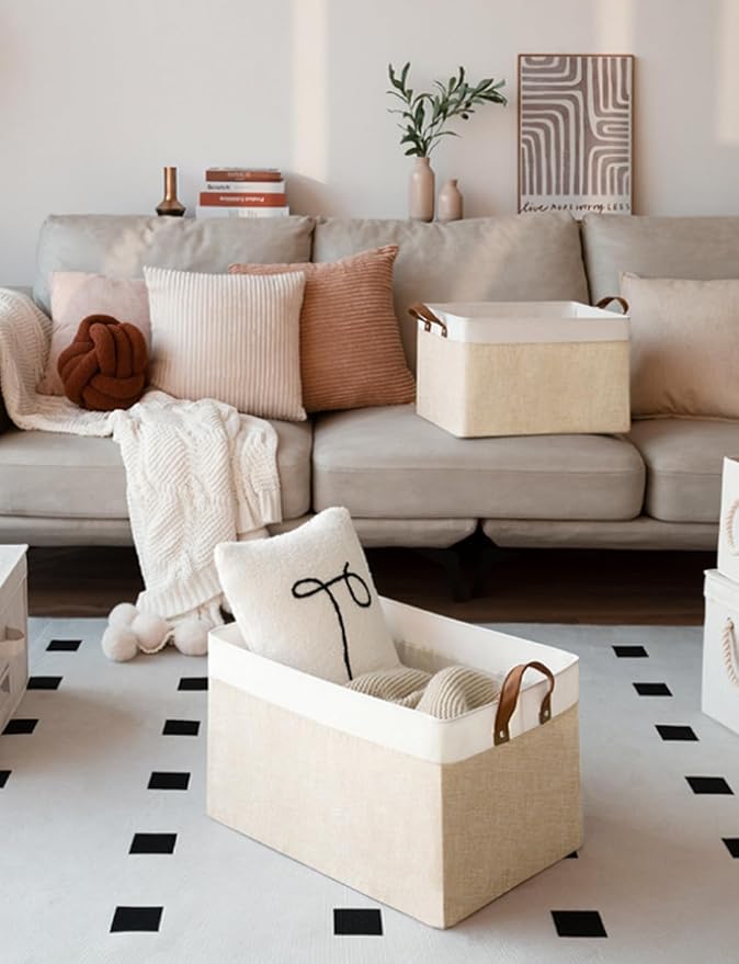 - Handle with Ease: With the 2 PU handles securely riveted to the sides of the storage bin, you can easily carry items without tearing the handles.