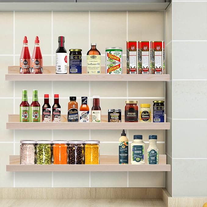 - Easy to Install: Floating wooden shelves for wall have pre-drilled holes, just come fully assembled and ready to hang, decide on which wall space you want to hang the floating shelves and mount them with the hardware included in the packaging.