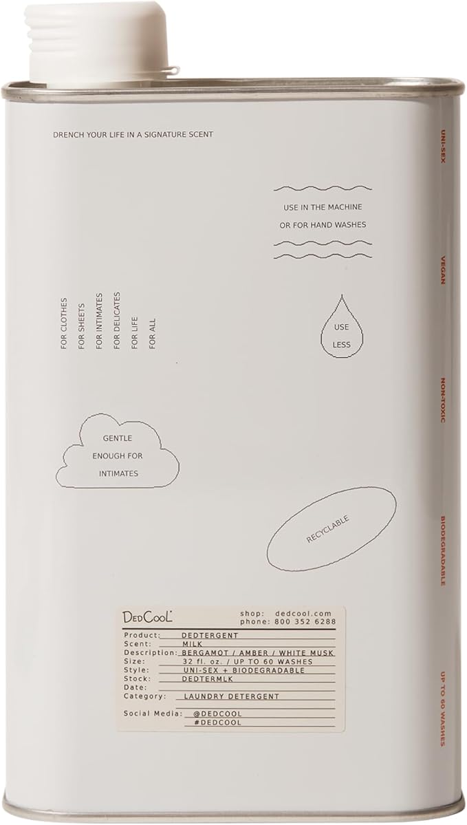 DedCool Liquid Laundry Dedtergent (Milk, 32 fl oz) Luxurious Fragrance, Scented, Removes Stains, Ideal for 60 Washes, Infused with Natural Essential Oils, Vegan, Non-Toxic, Cruelty & Dye Free