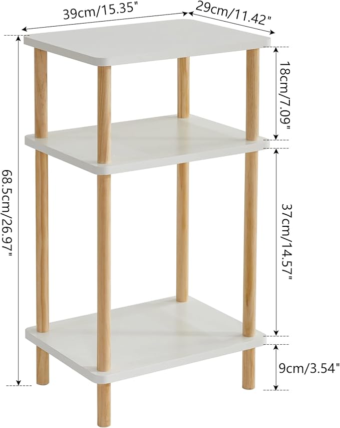 - 【STRONG YET STABLE】Crafted from high-quality MDF boards, legs made from solid beech wood, the side table will not shake, twist or crack, and each layer can bear 44 pounds, 4 rubber pads on the bottom offer greater stability and avoid scratching the floor.