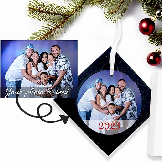 Custom Photo Christmas Ornament 2025 – Personalized Picture & Text Christmas Keepsake, Unique Gift for Newlyweds, New Parents, Baby’s First Christmas, New Home, Graduation, Milestones