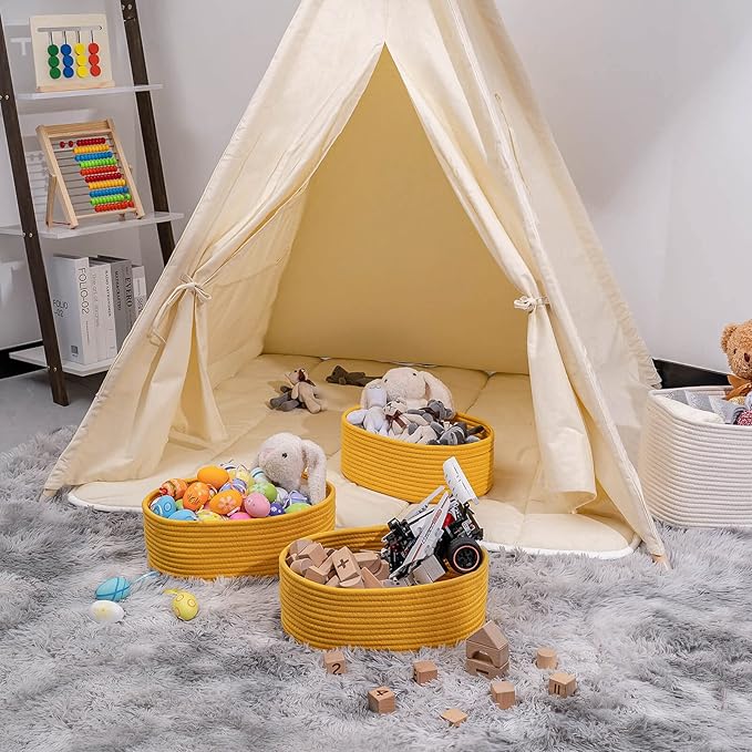 Shelf Storage Baskets for Organizing|Decorative Basket for Closet Storage|Toy Baskets&Bins|Small Woven Rope Baskets-13x8.66x5.11’’,Durable&Stylish,Oval 3 Packs Yellow