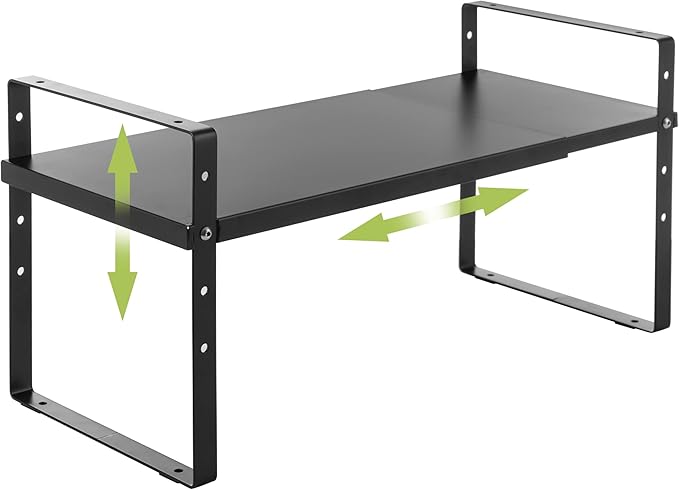 Expandable Cabinet Shelf Organizer Rack, Stackable Kitchen Counter Storage Shelves Stand, Adjustable Height Pantry Shelf Spice Rack (Black, 1 Pack)