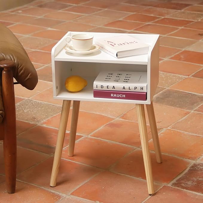 MaxSmeo White Nightstand, Small Bed Side Table for Small Spaces,Mid Century Modern Nightstand End Table with Storage and Solid Wood Legs for Bedroom Living Room(White)