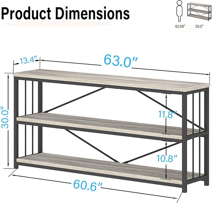 - Ample Storage: This rustic sofa table features a 3-tier storage design as its main highlight. With its clever structure, it effortlessly accommodates various items such as books, collectibles, and magazines. It's not just functional home furniture, but also a piece that combines practicality and artistry, adding personality to your space.