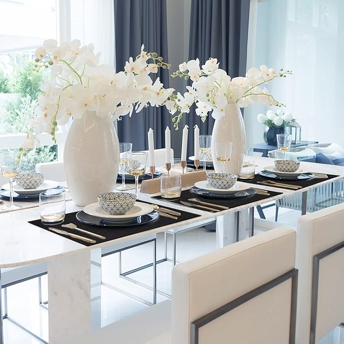 - ✅ [DURABLE&HEAT-RESISTANT]: The thickness of the placemats reaches 0.08inch/0.2cm. Both sides are made of durable and heat -resistant faux leather. The excellent quality can be isolate the heat very well, so that your pot, dinner plate will not hurt your dining table. The highest heat resistance temperature of the placemats reaches 212℉/100 ℃.
