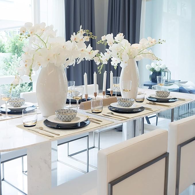 - ✅[HIGH QUALITY & NON -SLIP]: The surface of the placemats uses the latest technology to imitate the texture pattern of linen,so that our product is classic and beautiful at the same time. The surface of the double -sided 3D can increase the friction of the placemats, so that your tableware will not slide easily during dining to achieve anti -slip effects.