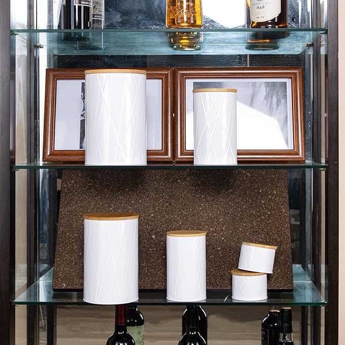- MATERIAL: FavorFlavor Canister set is made of galvanized and all-natural bamboo and latex-free natural rubber (food grade and BPA-free). The metal won't break as easily as glass or ceramic, it's strong, lead-free, and non-toxic to keep your kitchen essentials safe.