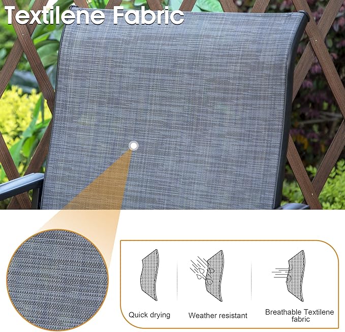 - Quick-Dry and Breathable Fabric: Stay cool and comfortable with our quick-drying and breathable Textilene fabric. Suitable for warm days, this feature adds to the overall comfort of your high top outdoor table and chairs