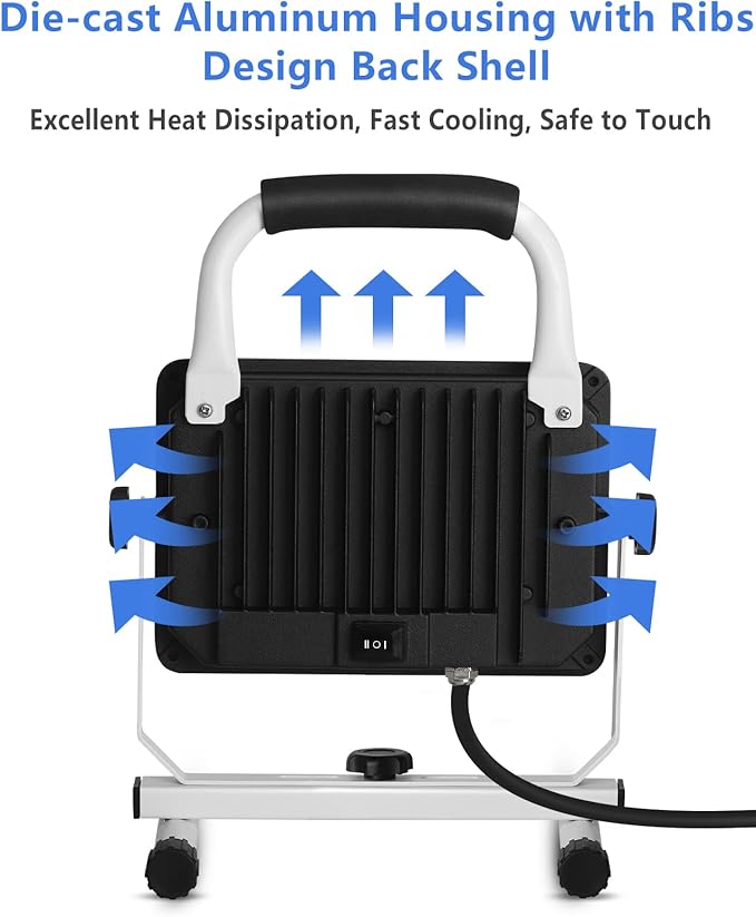 UFOND 6000 Lumen LED Work Light with Stand,60W Waterproof Flood Light, Brightness Switch Adjustable,Super Bright Portable Job Site Worklight with Power Cord for Garage Workshop Car,Outdoor Lighting