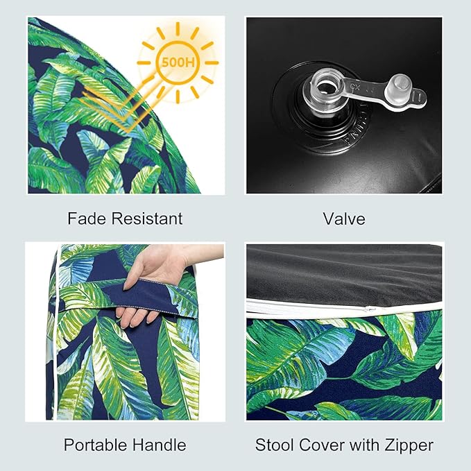 LVTXIII Inflatable Stool Ottoman Footrest with Handle, All Weather Foot Rest, Indoor or Outdoor Use for Home Patio Garden and Camping, D21 x H9, Hanalei Lagoon