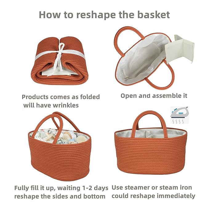 - Great Baby Gifts: This unisex diaper basket organizer is a perfect Newborn gifts as it Looks perfect on dresser top, next to diaper pail, bedside, crib and etc. This diaper basket caddy is not only beautiful but also practical. Could fill it with diapers, wipes or anything else new baby stuff as gift basket. Baby caddy is one of newborn must have items.
