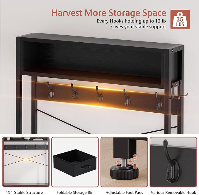- Stable and Safe: Adjustable foot pads are equipped at the bottom so that entryway coat rack can stand perfectly stable on carpets or uneven floors. Meanwhile, the hall trees with an X rack and 2 anti-tips allow the whole more safe to prevent it from falling and keep safety of the family. After 15-20 minutes of installation, then have a multi-functional coat and shoe rack.
