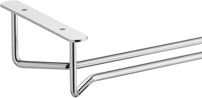 - Measures 16" x 4-5/8" x 1-5/8" Glass Hanging Stemware Rack Chrome Plated Set of 2.