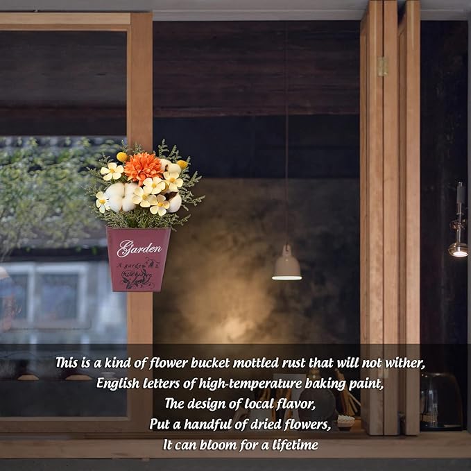 - [Style]The small iron bucket in candy color is very beautiful.Hand-painted 3-color (red, green and white) flower barrel with rural and idyllic style.It is recommended to buy with multi-color matching, which is more brilliant.