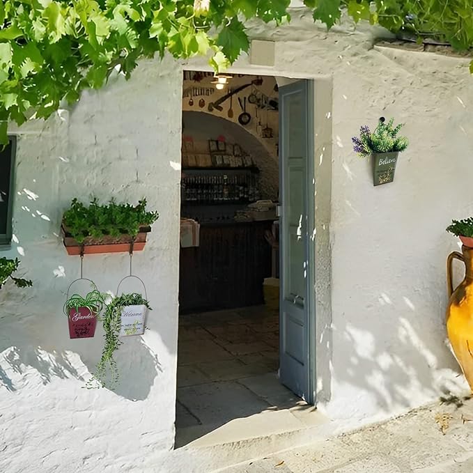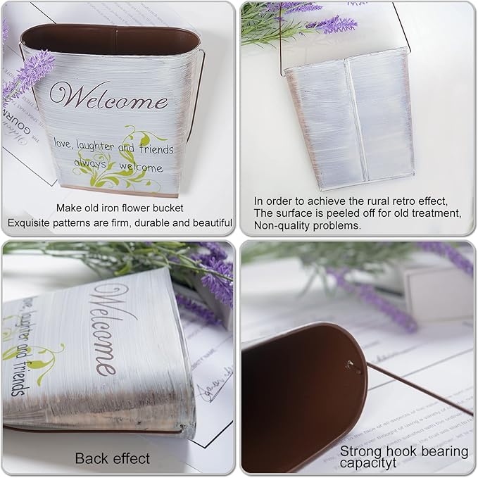 - [Handle]Every tin flowerpot has firm handle for easy hanging, can be hung on the wall above the wall clock, near the pictures, wooden plaque, windowsill or even mirror.